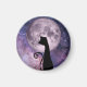 Chat noir en clair de lune en aimant rose et violet