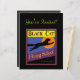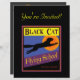 Un modèle d'invitation personnalisé vous pouvez customiser avec un chat noir magique volant à travers un ciel bleu avec une lune orange. Cliquez sur Customiser pour modifier les polices, le dimensionnement et même enregistrer votre conception pour plus tard.