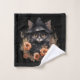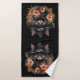 Serviette sertie d'une jolie illustration. Un chat noir aux cheveux longs portant un casquette de sorcière noire. C'est des oreilles qui s'arrachent. Entouré de fleurs d'automne orange et marron. Parfait pour les amoureux de les chats.