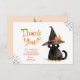 Chat noir mignon carte de remerciements d'anniversaire d'Halloween. Éléments correspondants disponibles.