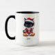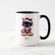 Cute chaton noir en pyjama de Noël tenant une tasse de cacao de vacances. Le petit cadeau de Noël parfait pour les amoureux de les chats.