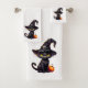 Chat noir portant un Casquette de sorcières Transformez votre salle de bain dans votre oasis personnelle avec une serviette personnalisée parfaite pour vous sécher dans le style.