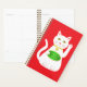 Cet impressionnant planificateur du Nouvel An chinois présente une image graphique d'un chat oriental blanc chanceux. Le chat a de beaux yeux dorés et porte un médaillon d'or sur le collier autour du cou. Le chat a des oreilles roses et des chuchotements. Ce mignon petit chaton tient un jeton doré avec une incrustation de jade verte et un message en texte doré qui dit "Bonne chance".