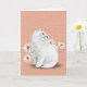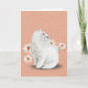 Chat persan blanc mignon avec fleurs marguerites blanches sur des points blancs et arrière - plan orange pour anniversaire général.