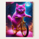 Chat Rose Sur Un Vélo D'Or Pittoresque Étoiles Et Lune En Arrière - plan