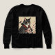 Illustration frappante d'un féroce chat samouraï noir, vêtu d'une armure traditionnelle, entouré de délicates fleurs de cerisiers roses. Le contraste audacieux entre les yeux dorés percants du chat et l’arrière - plan floral doux crée un parfait mélange de force et d’élégance — un design accrocheur idéal pour les vêtements de rue et la mode d’inspiration japonaise.