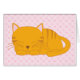 Le design adorable présente une douce illustration d'un chaton à tabby orange qui fait une sieste sur un mignon coeur rose ou bleu et un arrière - plan motif empreinte de patte.