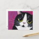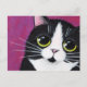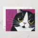 Chat Tuxedo Kitty sur une carte postale rose