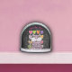 Ce globe de neige est noir avec un mignon chat rayé violet aux yeux verts avec un mur de coeurs de bonbons de Saint-Valentin colorés avec des paroles derrière lui. Customisez votre texte avec le modèle.