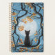 Chat Whimsical dans un arbre avec peinture à la Pleine lune. Un chat noir sur une branche d'arbre avec des fleurs jaune et orange vifs, en regardant la Pleine lune avec un ciel bleu Peinture acrylique. Peinture acrylique Whimsical moderne, Peinture à la main par Donna Leger. Tous droits réservés. ©dessins ironiques