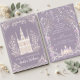 Une jolie invitation de douche de mariée violet lavande avec un beau château de conte de fée sur le devant et une bordure florale fantaisiste sur le dos avec les informations de votre événement. Ravissant pour un événement sur le thème de Raiponce.