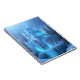 Carnet d'un château magique entièrement de glace. Une cascade gelée descend des fondations du donjon pour devenir glaces à son extrémité. Des pins entourent le château tandis que le Soleil se réfraction à travers la glace créant de belles lumières bleues qui semblent venir du coeur du donjon... peut-être les rêves gelés essayant de se libérer. L'image a été générée avec Leonardo.ai et modifiée par moi.