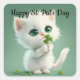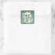 Une image adorable d'un chaton blanc tenant un trèfle, est présentée sur cet autocollant carré pour la Saint-Patrick. Avec le message "Joyeuse Saint-Patrick", utilisez cet autocollant pour ces envois spéciaux, la décoration, le scrapbooking et plus encore pour la fête irlandaise !