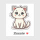 Illustration d'un chaton blanc kawaii enjoué dans le style chibi, idéal pour le scrapbooking, les agendas et les cadeaux mignons.