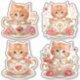 Améliorez vos créations, cadeaux et papeterie avec cet ensemble de quatre autocollants représentant un charmant petit chat roux assis dans une tasse de thé luxueuse ornée de détails dorés complexes et entourée d'accents floraux doux. Parfaits pour les amoureux des chats et les amateurs de designs fantaisistes et élégants, ces autocollants capturent une atmosphère romantique et enchanteresse. Idéal pour le scrapbooking, l'emballage de cadeaux ou la décoration de cahiers et de lettres, ils ajoutent une touche de magie et de sophistication à tout projet. Ces autocollants de haute qualité sont parfaits pour les occasions de fêtes, les anniversaires ou simplement pour répandre la joie.