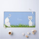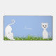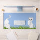 Animes de chat blanc mignon et fleurs sur fond bleu clair.
