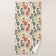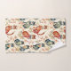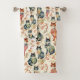 Serviette sertie dans un motif de chats aquarelles en brosses fluides et tourbillonnantes inspirées de l'art chinois, en dégradés de rouge, bleu, vert et noir, se mélangeant harmonieusement avec des feuilles stylisés.