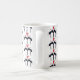 Tasse à café noir, rouge et blanc avec chats et coeurs noirs.
