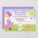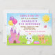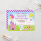 Adorable chats chats princesses choyés assis à côté d'un château rose avec ballons roses, jaunes et violets. Il y a des gâteries et des jouets à proximité comme un bol d'eau et des os de poisson. Graphiques de Prettygrafik Design et AMBillustrations