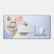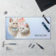 Chats d'aquarelle mignonnes aux arcs bleus et roses. Les chats forment un coeur. L'arrière - plan est bleu, mais vous pouvez le changer.