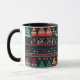 Sirotez un verre de Noël dans un style saisonnier avec cette moche tasse de Noël en chandail, qui présente un motif d'inspiration nordique de rennes, de flocons de neige et d'arbres de Noël dans des tons festifs de rouge, vert, blanc et beige. Imprimée sur une base en céramique noire audacieuse avec poignée et intérieur assortis, cette tasse apporte un charme d'hiver douillet à votre café du matin ou à votre cacao du soir. Parfait pour les cadeaux, les fêtes de fin d'année ou pour un usage personnel, ce design est idéal pour ceux qui recherchent des chopes moches en pull, des produits de buvette de Noël nordique, des tasses à café festives et des cadeaux de saison confortables. Des poignées personnalisables et des options intérieures vous permettent de l'adapter à votre goût — mais la version noir sur noir vole le spectacle.