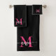 Pamper vous-même avec notre Hot rose moderne Script Girly Monogramme Nom Serviette de bain ensemble! Doté d'une couleur rose vif, ce luxueux ensemble de serviettes est personnalisé avec votre nom dans un élégant script moderne pour une touche chic et personnalisée. Fabriqué en tissu absorbant ultra doux, l'ensemble comprend une baignoire et des serviettes de bain, parfaites pour ajouter un peu de style à votre salle de bain. Durables et peluches, ces serviettes tendance allient confort et personnalisation, rendant votre temps de bain à la fois élégant et unique.