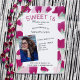 Les invitations à des soirées de 16 ans sucrées avec tulipes roses sont polyvalentes pour les palettes de couleur rose chaud, violet ou magenta. Des enveloppes assorties, des autocollants et des cartes de remerciement sont une touche finale à bleu ces invitations de fête d'anniversaire. Parfait pour les fêtes de printemps ou d'été.