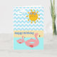 Carte d'anniversaire personnalisée Cute Swan Float In Water avec soleil et arrière - plan à motifs. La carte personnalisée peut être changée selon vos besoins.