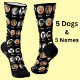 Chaussette 5 Chiens, 5 Noms, Photo Chien - Noir Personnalisé