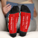 Chaussettes de pic à tête rouge avec un motif de caricatures adorables aux oiseaux, fond solide avec le texte, I'mixed martial art Bird Nerd et I love Birdies, les deux lignes peuvent être changées à votre propre texte - une bande blanche sur le dessus avec des couleurs coordonnées et le logo BirdyBirdy™ sur le dessus. Sans aucun doute, le cadeau parfait pour les amateurs d'oiseaux pour l'observateur d'oiseaux qui a tout.. bien - Presque tout..