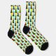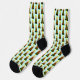 Cette superbe paire de chaussettes d'équipage à motifs présente un joli Ange de Noël avec des cheveux blonds, des yeux bleus et un grand sourire. Son corps est une cloche festive de couleur verte et rouge avec un clappeur jaune au fond.