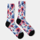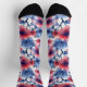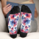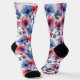 Chaussette Aquarelle rouge, fleurs bleues sur le blanc