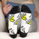 Paire de chaussettes d'équipage humoristique de signalisation représentant le signe d'une personne tombant dans les escaliers -- signifiant, avertissement de marches glissantes -- ainsi que la vérité suivante qui vous fera faire un double regard sur les différents chemins de la vie que l'on peut prendre : "Attention ! Les Escaliers De La Vie Peuvent Être Glissants".