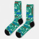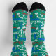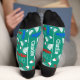 Des navettes de badminton sportive sur un arrière - plan de cour verte ont initialement conçu le nom de texte des chaussettes personnalisées. Ce modèle de raquette typographique à thème sportif a un texte rouge, bleu et blanc et peut être customisé avec votre propre nom, dit actuellement Charlie. Contactez-moi pour des demandes de nom plus long. Art et design originaux par Sarah Trett pour www.mylittleeden.com