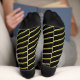 Ces chaussettes à rayures dorées, noires et faux (pas de papier d'aluminium), ont des bandes diagonales.