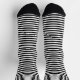 Un motif classique de fines bandes horizontales se trouve sur ces chaussettes noires et blanches.