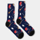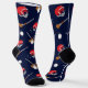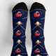 Chaussettes à hurles de nouveauté avec bâtons, balles et casques brodés sur un arrière - plan bleu foncé. Parfait pour les joueurs de hurling et les fans.