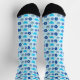 Cette superbe paire de chaussettes d'équipage à motifs présente l'image art numérique d'un groupe de fleurs et de papillons, chacune d'une nuance bleue pour représenter un bébé garçon. Les fleurs comprennent Dahlias, nénuphars, ne m'oubliez pas et Chrysanthemums.