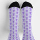 Cette superbe paire de chaussettes d'équipage à motifs présente une image graphique d'une petite abeille mignonne pourpre aux jambes noires et aux yeux bleus. Il a un corps flou couleur lavande avec des rayures violettes et de mignonnes antennes violettes sur sa tête floue. Ses délicates petites ailes ont un motif bleu pâle et marbré. Le design est neutre pour le genre, il convient donc pour célébrer un bébé garçon ou une petite fille.