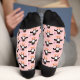 Cette superbe paire de chaussettes d'équipage à motifs présente un dessin mignon d'un manchot aux yeux roses, un petit bec orange et un ventre blanc. Le pingouin tient un joli ballon rose pastel. Il y a du texte rose pâle à l'intérieur du ballon qui dit, "Petite fille". C'est le cadeau parfait pour célébrer une grossesse, un baby shower ou une petite fille à naître.