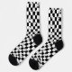 Cute and stylish black and white checkered socks with chessboard pattern and little flowers .