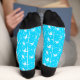 Ces chaussettes sont parfaites pour Noël, mais assez amusantes pour porter tout l'hiver. Ils présentent des illustrations de skieurs faisant des tours de ski ainsi que des flocons de neige en blanc dressés contre un arrière - plan bleu vif.