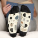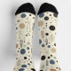 Une élégante motif aux cercles variés et aux motifs botaniques dans une palette apaisante de beige, marron, noir et bleu. Ce design minimaliste évoque une atmosphère boisée sereine.