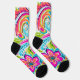 Le design présente un motif floral coloré et vibrant, rempli de nuances vives de rose, bleu, vert, orange et jaune. Il intègre des éléments tourbillonnants en cachemire et une variété de fleurs, lui donnant une esthétique audacieuse et vivante.