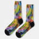 Des tourbillons vibrants de vert, jaune et violet mélangés à des touches énergiques d'orange et de rose, créant un sens dynamique du mouvement. La composition abstraite évoque un sentiment d'harmonie chaotique, attirant l'attention avec ses couleurs vives et ses formes audacieuses.