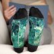 Une composition abstraite dynamique présente un ensemble de formes tourbillonnantes et de motifs dans différentes nuances de vert, noir et bleu