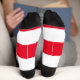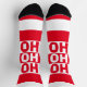 Ces chaussettes présentent des rayures rouges et blanches alternant des "HO HO" en rouge et blanc. Une combinaison classique de Noël !