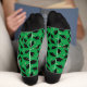 Des casquettes noires jetées dans l'air font un design sympa sur ces chaussettes de fête de graduation pour un diplômé du lycée, du collège ou de l'université. La graduation noire se limite à un arrière - plan vert.