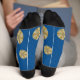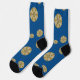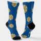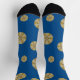 Un mandala en forme de dentelle concentrique en bleu foncé avec des points bleu vif et dorés comme des étoiles qui s'étalent entre les couches et un cercle en dégradé de soleil brillant derrière fait un design amusant qui rappelle un ciel étoilé et une journée ensoleillée brillante avec une image.