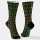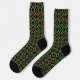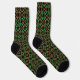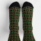 Cette paire de chaussettes à motifs de vacances présente un design de rubans entrelacés comme des formes inspirées de l'art du noeud celtique, ainsi que des couronnes de feuilles saints et de baies, le tout dans une combinaison traditionnelle de couleur de Noël de rouge et de vert avec des accents jaunes dorés.